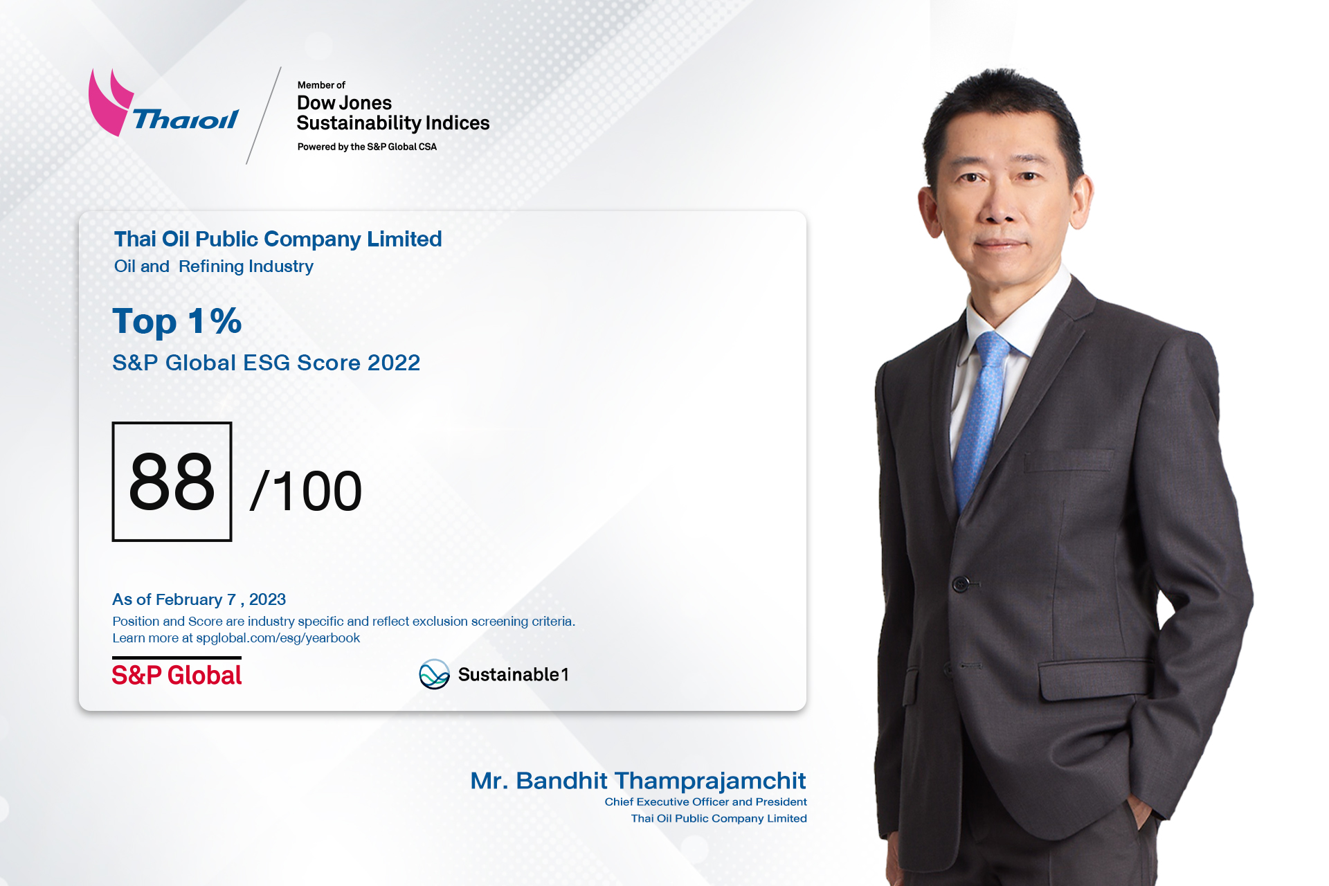 "ไทยออยล์" ได้รับการประเมินด้านความยั่งยืนระดับสูงสุดของโลก ประจำปี 2566 จาก S&P Global