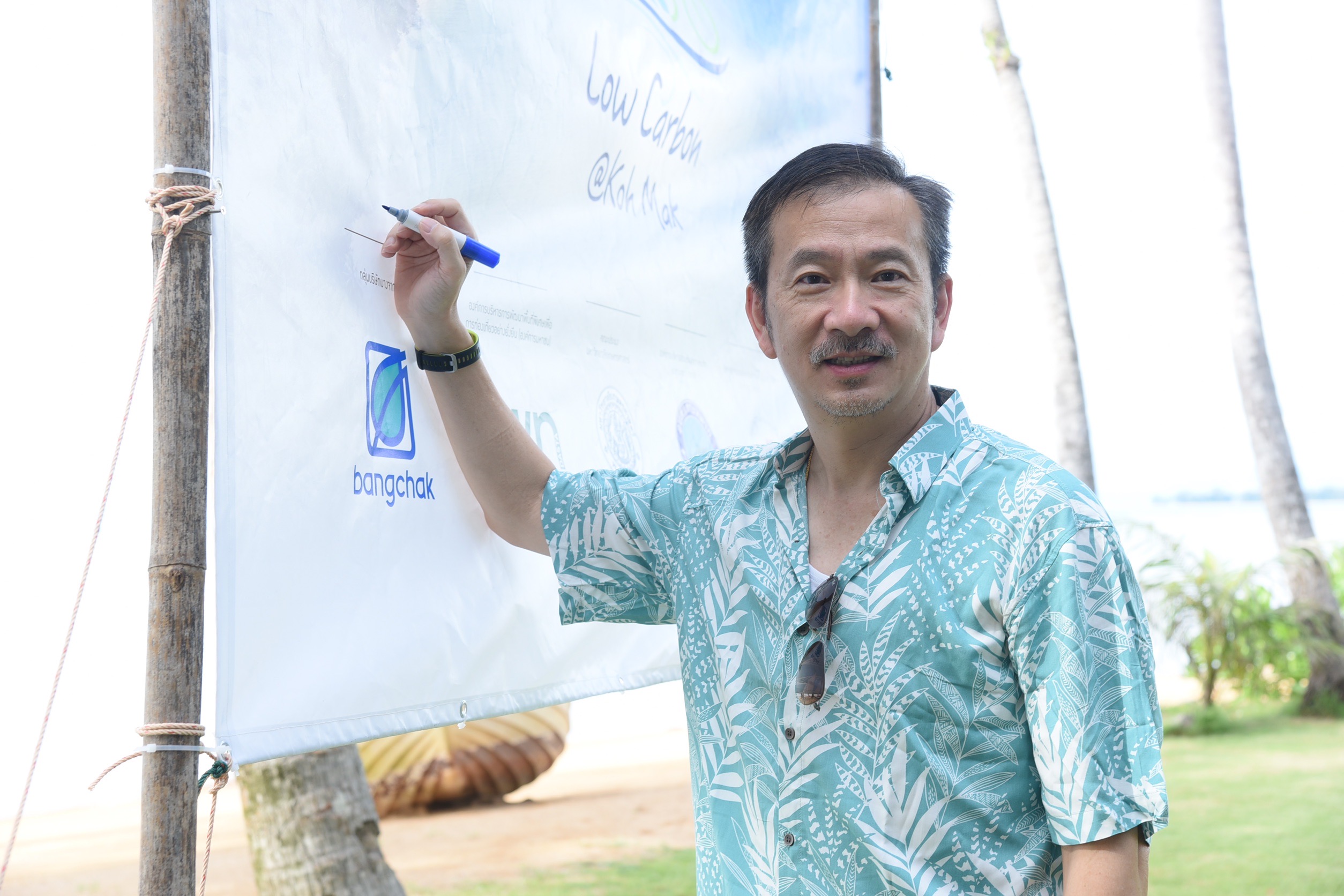 นายชัยวัฒน์ กล่าวต่อว่า สาหรับการลงนามข้อตกลงความร่วมมือเพื่อพัฒนาพื้นที่เกาะหมาก สู่เป้าหมายการเป็น Low Carbon Destination ในครั้งนี้ กลุ่มบางจากฯ มีความยินดีที่จะร่วมสนับสนุนพื้นที่เกาะหมากซึ่งเป็นพื้นที่เป้าหมายแห่งแรกในโครงการแหล่งท่องเที่ยวคาร์บอนต่าของประเทศไทยที่ อพท. เป็นผู้ริเริ่มการขับเคลื่อน ผนวกกับการใส่ใจดูแลธรรมชาติและสิ่งแวดล้อมอย่างจริงจังจากชุมชนท้องถิ่น ถือเป็นพื้นที่ต้นแบบของประเทศในการร่วมบรรเทาภาวะวิกฤติของโลกด้านสภาพภูมิอากาศ โดยการสนับสนุนคณะประมง มหาวิทยาลัยเกษตรศาสตร์ในการศึกษา Blue Carbon จากการกักเก็บคาร์บอนไดออกไซด์ของแหล่งหญ้าทะเลในแนวปะการังภาคตะวันออกเป็นครั้งแรกของประเทศไทย ซึ่งการดูดซับคาร์บอนด้วยวิถีธรรมชาติจากหญ้าทะเลนี้ กาลังได้รับความสนใจเป็นอย่างมากทั่วโลก