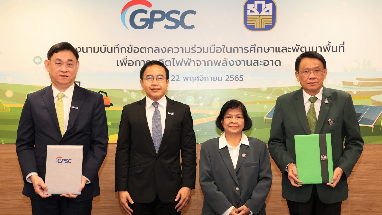 วันนี้ (22 พฤศจิกายน 2565) นายวรวัฒน์ พิทยศิริ ประธานเจ้าหน้าที่บริหารและกรรมการผู้จัดการใหญ่ บริษัท โกลบอล เพาเวอร์ ซินเนอร์ยี่ จำกัด (มหาชน) หรือ GPSC แกนนำนวัตกรรมธุรกิจไฟฟ้ากลุ่ม ปตท. ได้ลงนามในบันทึกข้อตกลงความร่วมมือในการศึกษาและพัฒนาพื้นที่เพื่อการผลิตไฟฟ้าจากพลังงานสะอาดกับ นายธนารัตน์ งามวลัยรัตน์ ผู้จัดการธนาคารเพื่อการเกษตรและสหกรณ์การเกษตร (ธ.ก.ส.) โดยการศึกษามุ่งเน้นในการนำพื้นที่เกษตรกรรมที่มีศักยภาพ มาพัฒนาการผลิตไฟฟ้าจากพลังงานสะอาด เช่น แสงอาทิตย์ ลม ควบคู่ไปกับการส่งเสริมการประยุกต์ใช้เทคโนโลยีด้านพลังงานสะอาดในภาคเกษตรกรรม เพื่อเพิ่มประสิทธิภาพการใช้ไฟฟ้า และยกระดับภาคการเกษตรของไทยก้าวสู่การเกษตรอัจฉริยะ หรือ Smart Farming พร้อมเติมทุนอัตราดอกเบี้ยต่ำผ่านโครงการส่งเสริมและสนับสนุนสินเชื่อสีเขียว (Green Credit) วงเงินรวมกว่า 20,000 ล้านบาท เพื่อร่วมขับเคลื่อนการปล่อยก๊าซเรือนกระจกสุทธิเป็นศูนย์ในปี 2608 ตามเป้าหมายของประเทศ