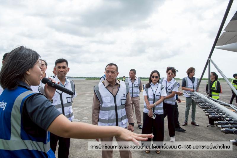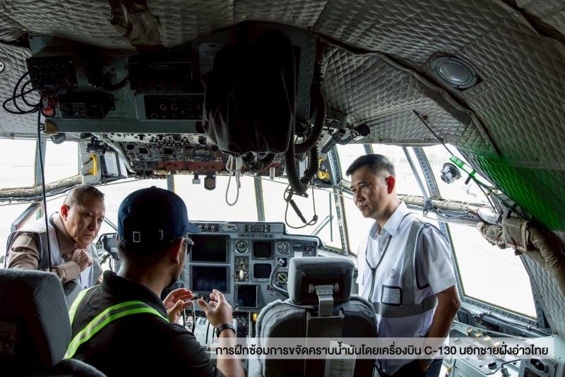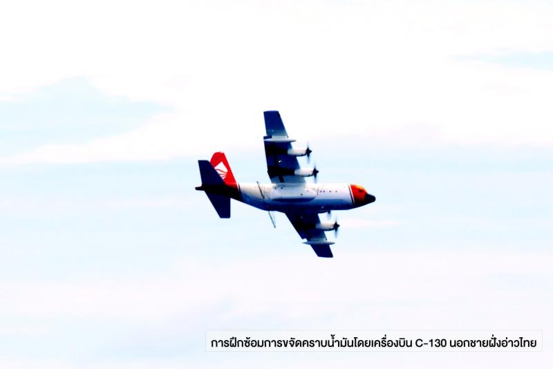 การฝึกซ้อมการขจัดคราบน้ำมันหากเกิดการรั่วไหลโดยใช้เครื่องบิน C-130 จากต่างประเทศเข้ามาฝึกซ้อมครั้งนี้นับเป็นการฝึกซ้อมเชิงปฏิบัติการครั้งแรกในประเทศไทย ซึ่งจัดขึ้นที่ท่าอากาศยานนานาชาติอู่ตะเภา ระยอง-พัทยา และกองการบินทหารเรือ อำเภอบ้านฉาง จังหวัดระยอง ระหว่างวันที่ 25-27 สิงหาคม 2568 โดยเป็นส่วนหนึ่งในการสนับสนุนการฝึกซ้อมแผนปฏิบัติการขจัดมลพิษทางน้ำเนื่องจากน้ำมันที่ภาครัฐและภาคเอกชนที่เกี่ยวข้องให้ความสำคัญ ซึ่งเป็นการสร้างความเข้าใจร่วมกันระหว่างหน่วยงานที่เกี่ยวข้องให้เห็นถึงความจำเป็นในการจัดการสถานการณ์ด้วยการฉีดพ่นสารขจัดคราบน้ำมันโดยเครื่องบิน รวมถึงแนวทางการประสานงานระหว่างหน่วยงานทั้งในประเทศและต่างประเทศในการนำทรัพยากรต่าง ๆ เข้ามาใช้ ทั้งด้านผู้เชี่ยวชาญและด้านอุปกรณ์ในการขจัดคราบน้ำมัน เพื่อให้สามารถตอบสนองได้ทันต่อสถานการณ์ ลดผลกระทบที่อาจเกิดขึ้นได้อย่างมีประสิทธิภาพ สำหรับการฝึกซ้อมโดยเครื่องบิน C-130 ครั้งนี้ได้ใช้น้ำจืดแทนสารขจัดคราบน้ำมันฉีดพ่นในบริเวณพื้นที่ที่มีการจำลองสถานการณ์ในทะเลอ่าวไทย
