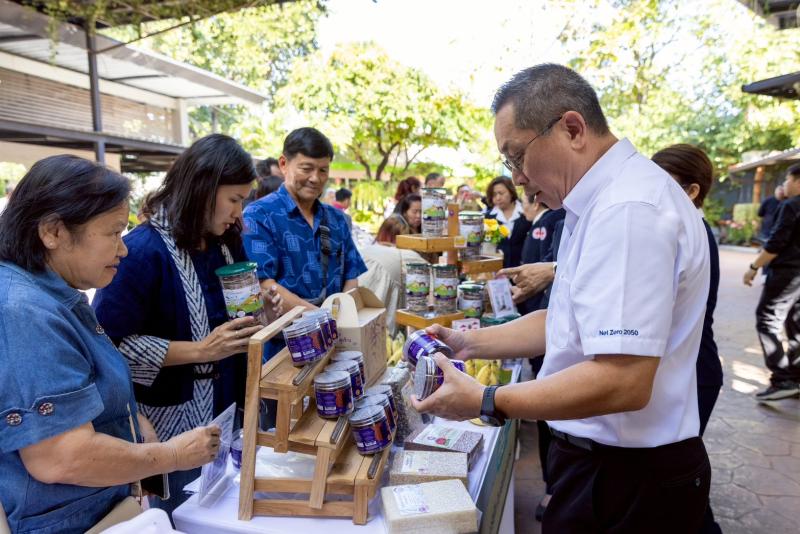 หม่อมหลวงปีกทอง ทองใหญ่ ประธานเจ้าหน้าที่บริหาร บริษัท ปตท. น้ำมันและการค้าปลีก จำกัด (มหาชน) หรือ OR และ นายกลวัชร ทรัพย์ส่งสุข รองผู้ว่าราชการจังหวัดสุพรรณบุรี ร่วมเปิดโครงการ “พื้นที่ปันสุขช่วยเหลือเกษตรกรผู้ปลูกข้าวที่ PTT Station” ณ สถานีบริการน้ำมัน PTT Station