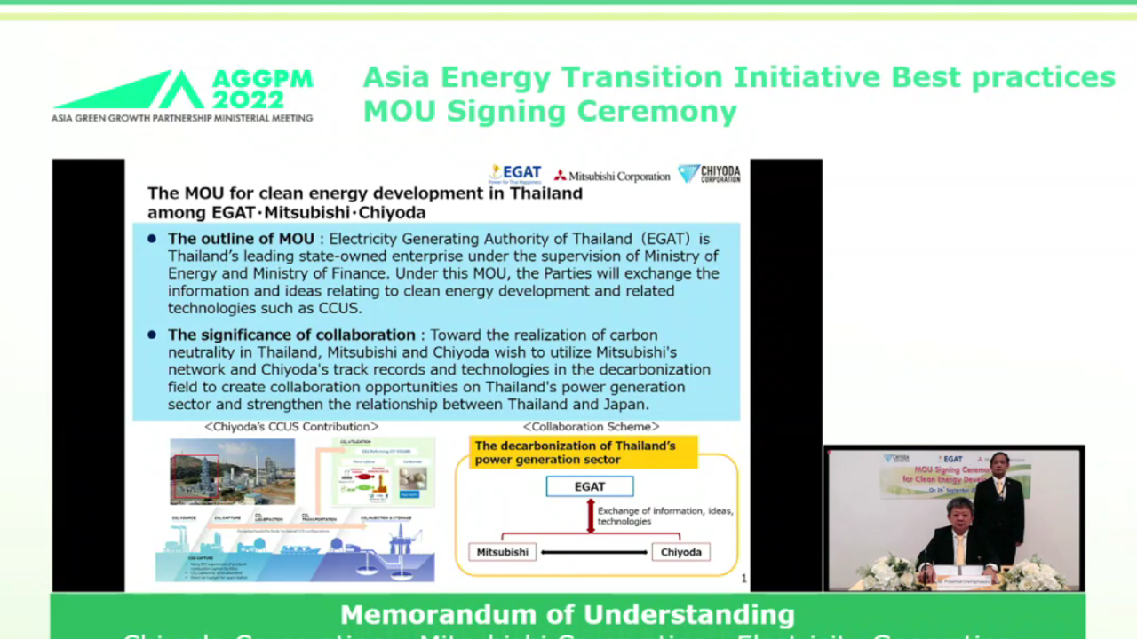 กฟผ. บริษัท Chiyoda และ บริษัท Mitsubishi ร่วมลงนามข้อตกลงความร่วมมือ แลกเปลี่ยนและศึกษาเทคโนโลยีการดักจับ การใช้ประโยชน์ การกักเก็บคาร์บอน (CCUS) และ พลังงานสีเขียว เพื่อประยุกต์ใช้กับโรงไฟฟ้า ลดการปล่อยก๊าซเรือนกระจกสู่สิ่งแวดล้อม มุ่งสู่เป้าหมายความเป็นกลางทางคาร์บอน