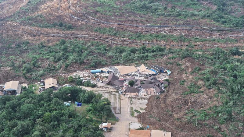 กระทั่ง วันที่ 4 พฤศจิกายน 2568 เวลาประมาณ 03.00 น. พบการเคลื่อนตัวของมวลดินและเกิดดินสไลด์ ส่งผลให้อาคารสำนักงานบริษัทผู้รับจ้าง และทรัพย์สินบางส่วนได้รับความเสียหาย แต่ไม่พบผู้ได้รับบาดเจ็บและเสียชีวิตแต่อย่างใด บริเวณความเสียหายเบื้องต้นครอบคลุม 1 ตารางกิโลเมตร และอยู่ระหว่างการสำรวจพื้นที่ จากการตรวจสอบสาเหตุเบื้องต้นพบว่า ตั้งแต่ช่วงวันที่ 31 ตุลาคม 2568 จนถึงวันที่ 4 พฤศจิกายน 2568 มีฝนตกต่อเนื่อง คาดว่าจะเป็นหนึ่งในสาเหตุของการเคลื่อนตัวและดินสไลด์ดังกล่าว